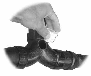 If one side of a flow splitter is the final outlet (as in photo 12), you can plug it and the water will continue on unsplit. This could be used to bypass a deciduous fruit tree and send the water on to an evergreen one. When the deciduous tree leafs out, remove the plug and clear the opening.