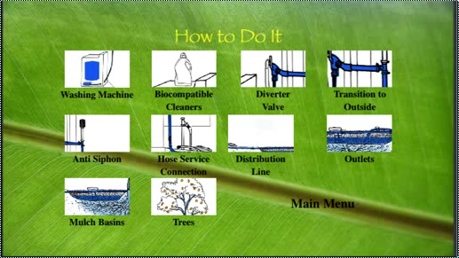 This video covers how-to basics for homeowners and renters. Ninety minutes in all, it also has extensive information on tools, parts, installation tricks, options, and special situations; enough for landscapers, contractors, and plumbers to install these systems as part of their green businesses.
